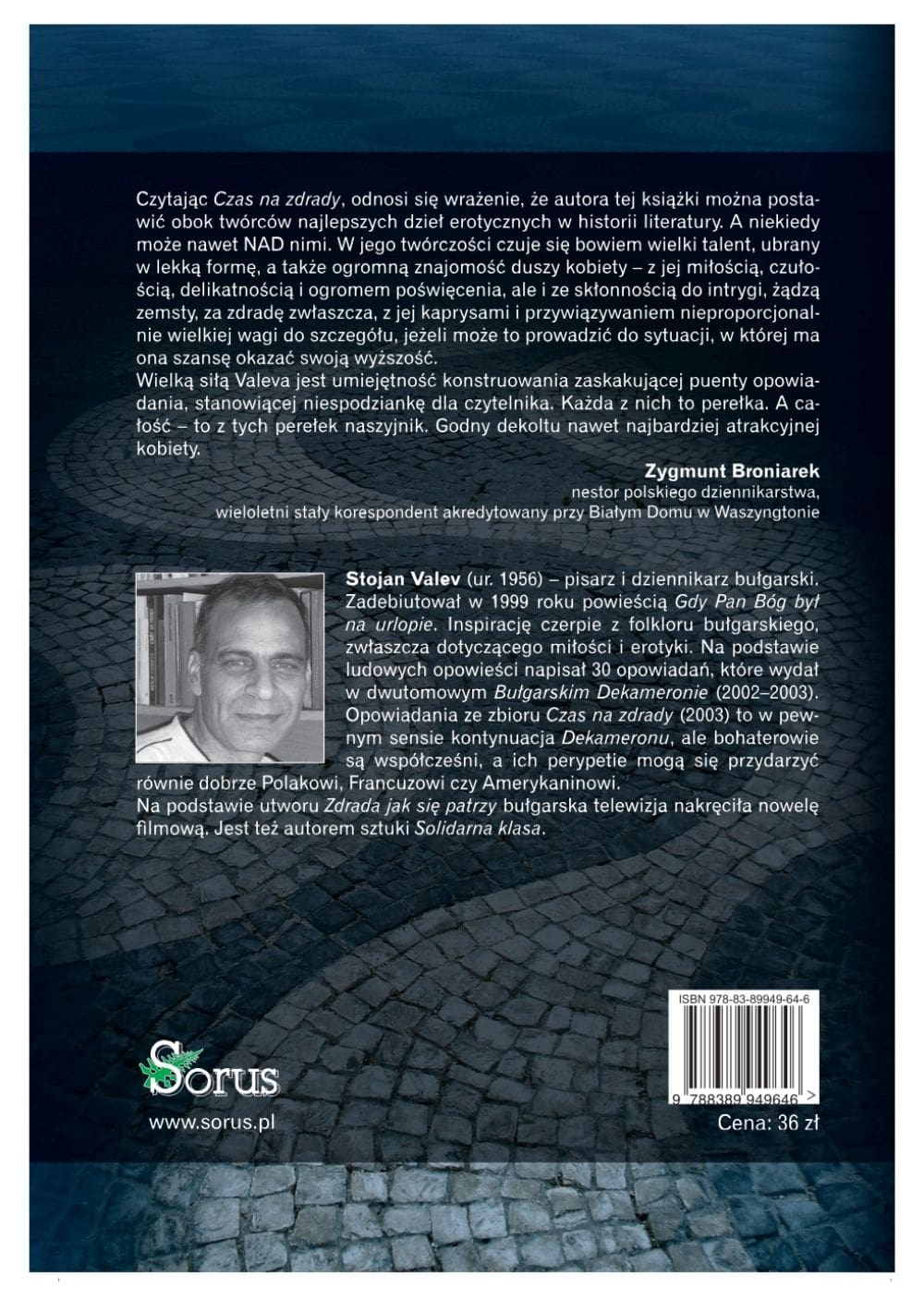 Stojan Valev (ur. 1956) – pisarz i dziennikarz bułgarski. Zadebiutował w 1999 roku powieścią „Gdy Pan Bóg był na urlopie”. Inspiracje czerpie z folkloru bułgarskiego, zwłaszcza dotyczącego miłości i erotyki. Na podstawie ludowych opowieści napisał 30 opowiadać, które wydał w dwutomowym „Bułgarskim Dekameronie” (2002-2003). Opowiadania ze zbioru „Czas na zdrady” (2003) to w pewnym sensie kontynuacja Dekameronu, ale bohaterowie są współcześni, a ich perypetie mogą się przydarzyć równie dobrze Polakowi, Francuzowi czy Amerykanowi.