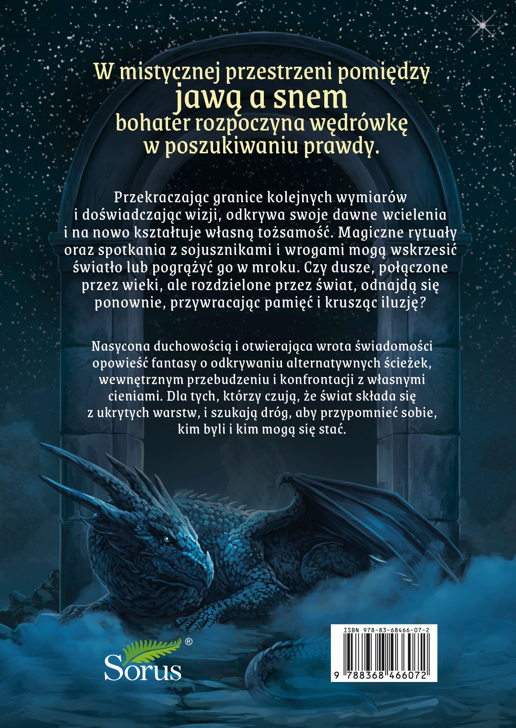 Mistyczna powieść z pogranicza fantasy i science fiction: Bohater bez imienia wędruje przez światy snu, wizji i rytuałów, by odzyskać pamięć, wolność i wewnętrzne światło. Dla dorosłych czytelników zainteresowanych symboliką, rozwojem świadomości i literaturą o duchowej transformacji.
