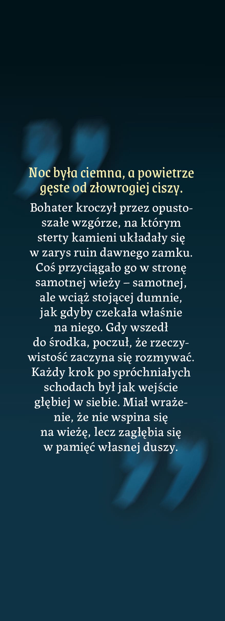 – Tym, który cię pamięta, kiedy ty sam zapominasz. – Postać odwróciła się, jej oczy przywodziły na myśl obraz nieba po burzy. – Pamiętasz most? Mapę? Ocean? To nie były symbole. To był początek drogi.