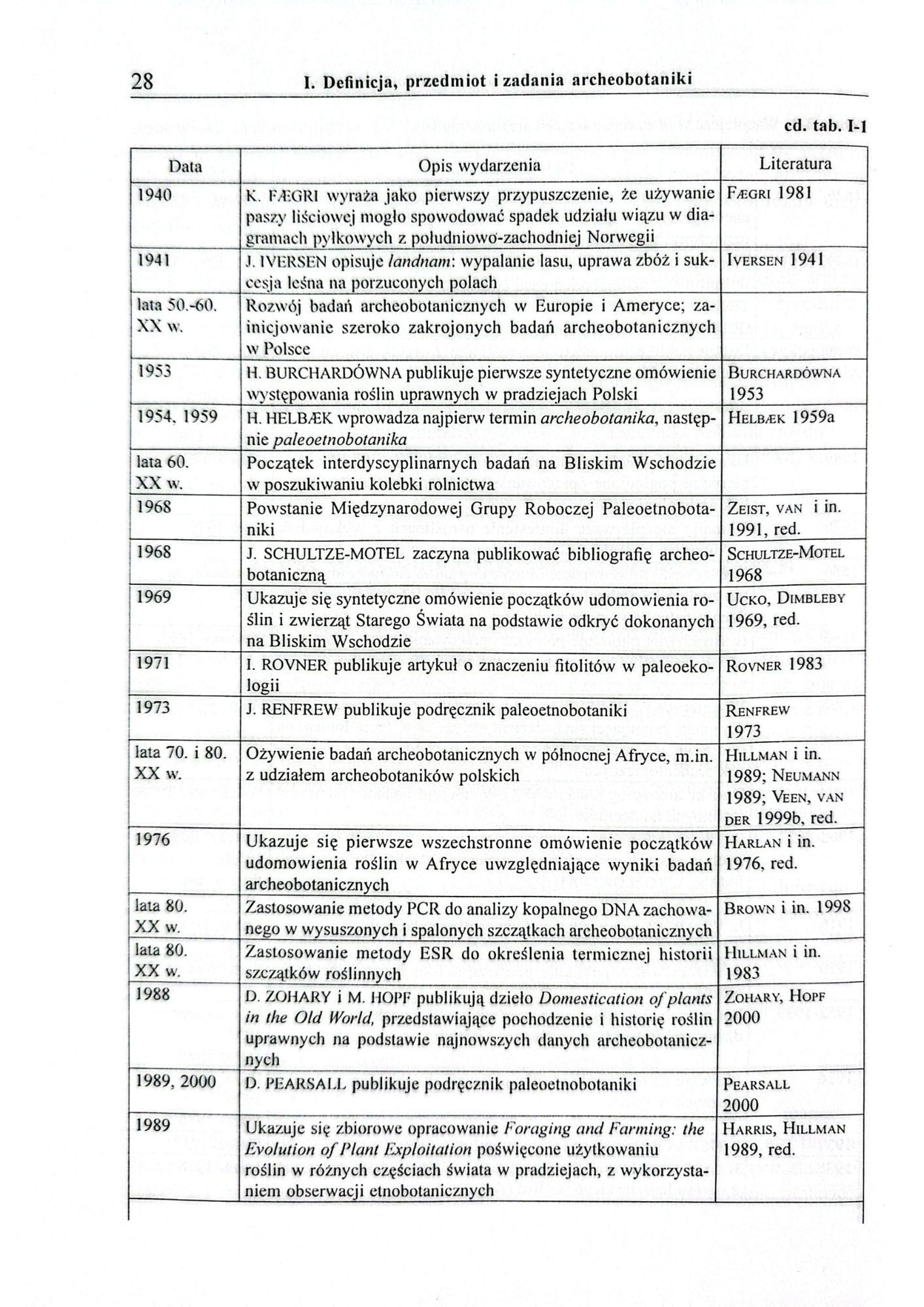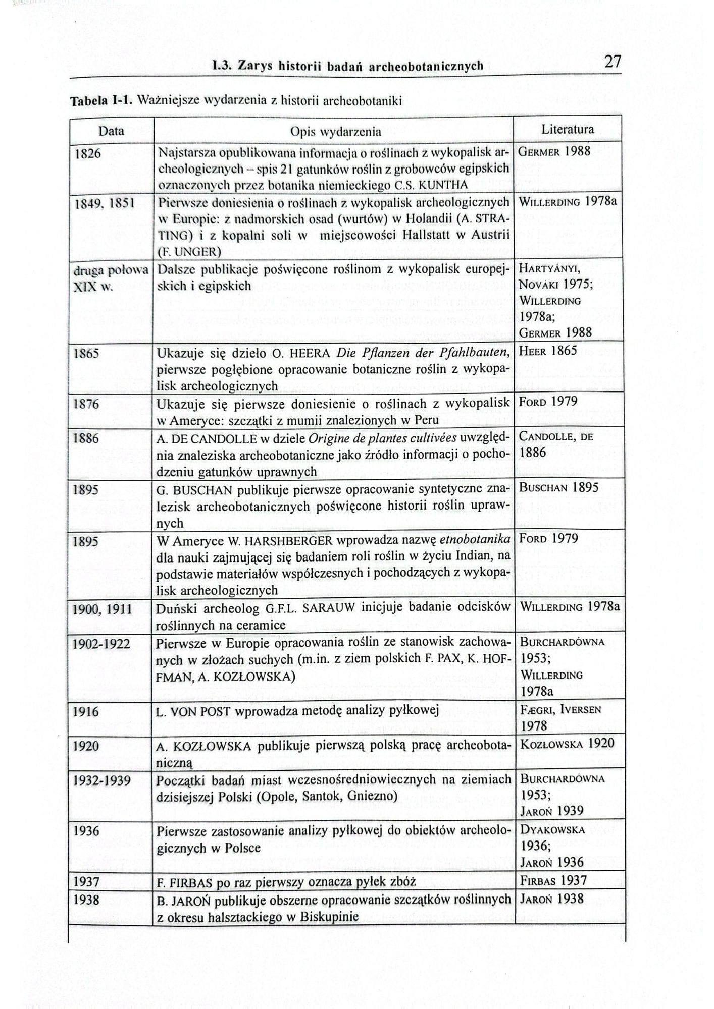 - Historia archeobotaniki europejskiej do 11 wojny światowej