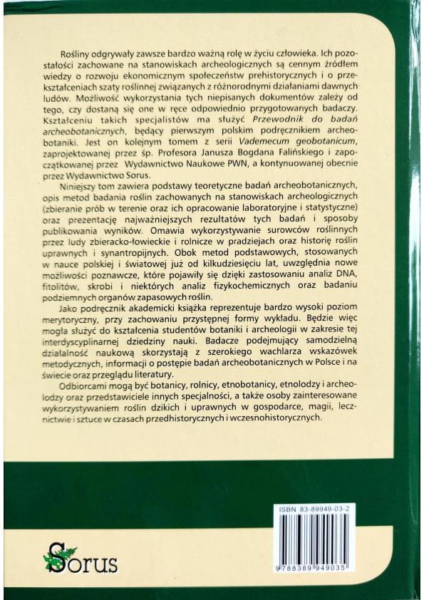 Badacze podejmujący samodzielną działalność naukową skorzystają z szerokiego wachlarza wskazówek metodycznych, informacji o postępie badań archeobotanicznych w Polsce i na świecie oraz przeglądu literatury.