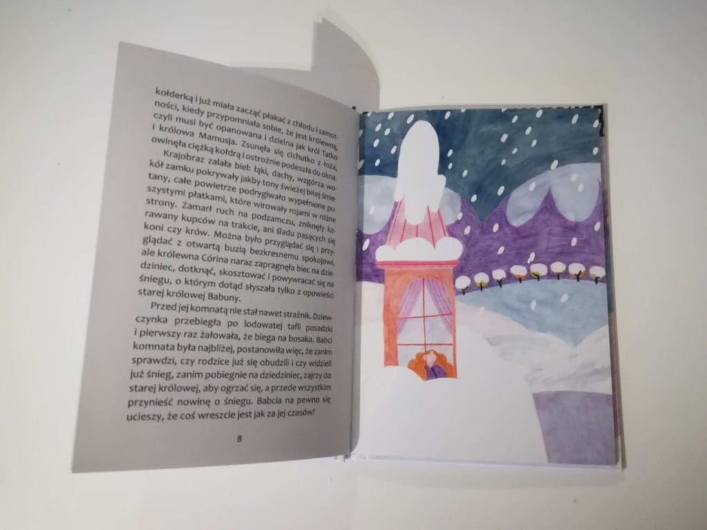 Jest to książeczka, przeznaczona dla dzieci w wieku przedszkolnym. Nawiązuję do tematyki fantastycznej i baśniowej z elementami oniryzmu. Historia opowiada o małej księżniczce, która zmaga się z pierwszą w swoim życiu surową zimą. Ciekawym rozwiązaniem jest umieszczenie dużej części fabuły w świecie snu.