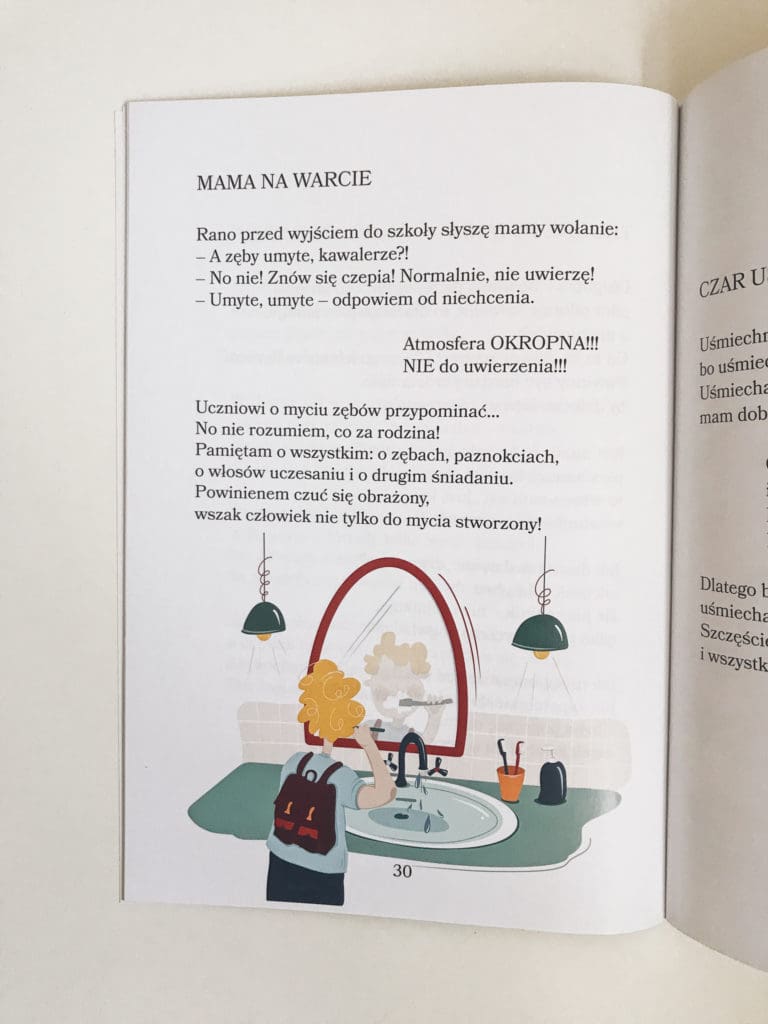 Jednak w tej książce zawarte są również elementy mające pomóc nie tylko dzieciom, ale i nastolatkom w poprawie wad wymowy oraz w zrozumieniu trudnych emocji. Z tego powodu w wierszach często możemy zaobserwować nagromadzenie różnych głosek – tak, by czytanie na głos mogło stanowić ćwiczenie logopedyczne oraz tematykę związaną z uczuciami i emocjami. W ten sposób dzieci będą miały możliwość pracy terapeutycznej poprzez zabawę!