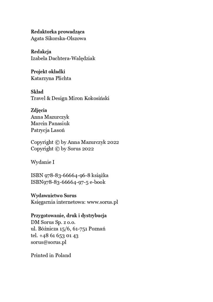 Książka została przygotowana z dostarczonych przez autorkę plików z tekstem książki (Word) oraz zdjęć.