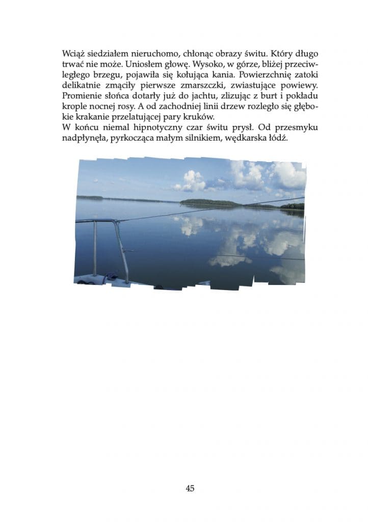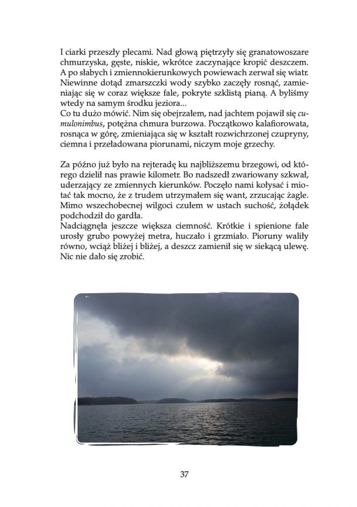 To kolejny już zbiór Lecha M. Jakóba. Kilka lat temu wydał publikację Po kiju. Fotoopowiadania, która skupiała się na jego miłości do wędkarstwa. Tym razem postanowił opowiedzieć o swojej pasji żeglarskiej. W najnowszym zbiorze opisuje swoje doświadczenia związane z pływaniu po jeziorze Drawsko. Opisuje w nim wspomnienia z tego czasu spędzonego z przyjaciółmi i partnerką, które wypełnione są humorem i przygodami.